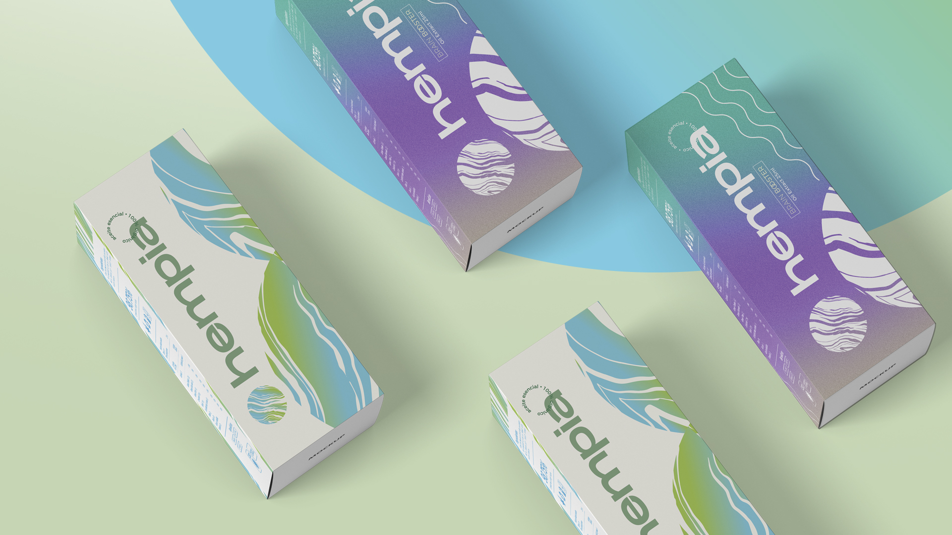Hempia is a branding and packaging design project created for a CBD-based wellness brand focused on balance, calm, and modern self-care. The objective was to develop a visual identity that communicates the natural origins of the product while maintaining a contemporary and premium aesthetic. The brand combines organic patterns, soft gradients, and fluid forms inspired by nature, reflecting the calming and restorative properties associated with CBD products. The project included brand identity development, packaging design, and a flexible visual system designed to support multiple product formats within the wellness and lifestyle market.