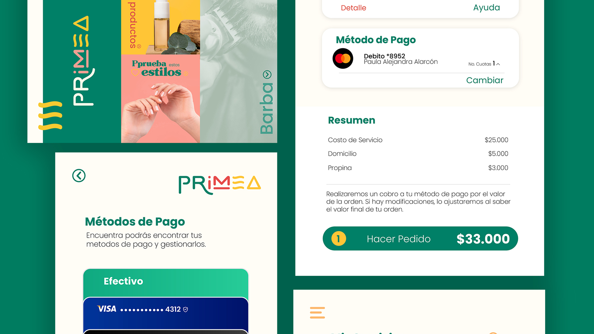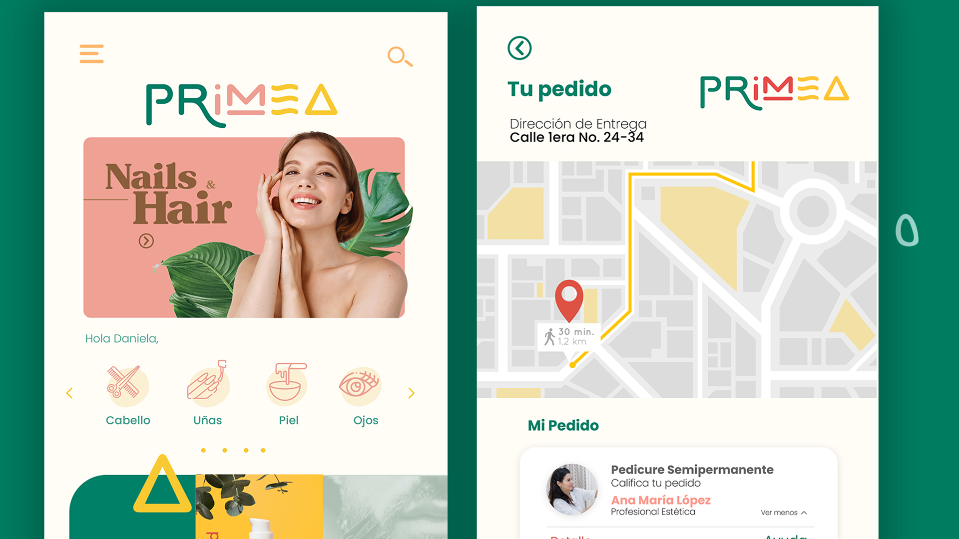 Primea is a branding and UX/UI design project for a mobile platform that connects beauty professionals with clients seeking at-home services. The goal was to design a seamless digital experience where users can easily browse services, schedule appointments, and manage payments from a single app. The visual identity was developed to reflect freshness, simplicity, and accessibility, creating a brand that feels both modern and welcoming. The project included the development of the brand identity, user interface design, and the overall user experience flow for a beauty service booking platform.
